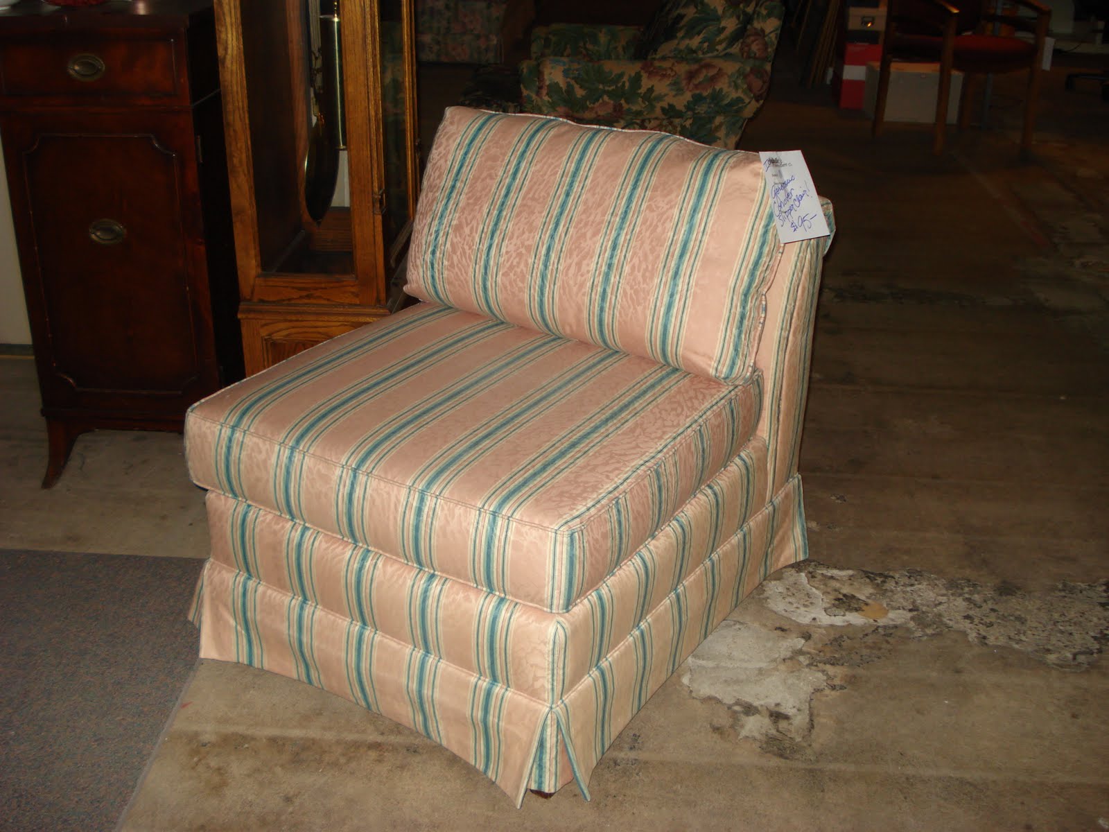 love seat in excellent condition for $125 and the matching wind back (and the fourth one we received for donation this week) is $85. There's also a sofa that matches, but it needs a leg put on and I didn't get a chance to examine it - but if it's as nice as these two pieces I'll probably priced it $165